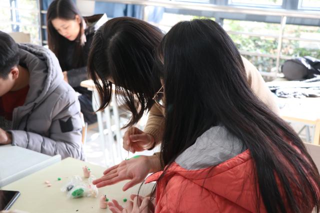 互动体验环节中,汤健老师与同学同坐一桌,与同学们交流融洽、气氛热烈。在动手制作面塑的过程中,同学们亲眼见到了老师如何把一个小小的面团制作成一件件精致的面塑作品,大家无不赞叹老师技艺之高超,也想到了汤老师的学习时的辛苦和努力,体会到了其精益求精的工匠精神。汤健老师把每一个步骤细致讲解,对于每一个制作的手法,捏造型的方式,还有固定作用以及工具的使用方法都一一道来。在学生自己动手的环节,汤健老师深入学生群体,一对一指导,并且鼓励学生创新,动手制作自己想要的东西。学生积极发言提问,老师耐心教导,在学生制作的面塑中不断有新思维的体现,各有千秋,栩栩如生。汤老师还解答了同学们的问题,提到了今天所使用原材料都是自己蒸制的,并且其制作配方保密,市场上无法普及,讲座现场学习动手氛围浓厚,师生互动十分融洽。