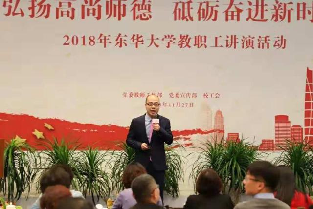 本次活动得到了全校教职工的广泛参与,我院积极推荐教师代表参赛。讲演内容均为原创作品。讲演中,pg娱乐电子游戏官网入口老师们从“弘扬爱国奋斗精神,建功立业新时代”“改革开放40周年,教育奋进正当时”“弘扬高尚师德,潜心立德树人”三个方向切入,声情并茂地讲演东华人的故事,缅怀钱宝钧等老一辈知识分子的家国情怀和奉献精神,感沐优秀教师潜心育人的感人事迹,展现了教师坚守讲台、铸魂筑梦、立德树人的良好形象,坚定“四个自信”、在课程思政改革中勇于创新、追求卓越的时代风貌,传递出浓浓师德正能量。