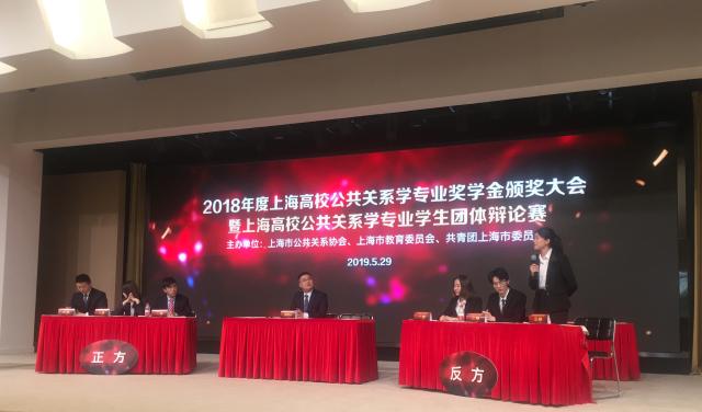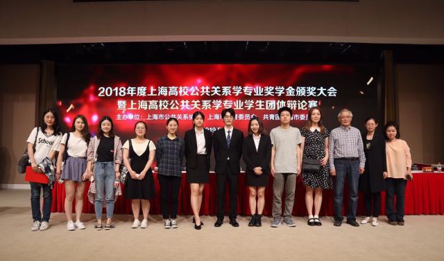 5月29日下午,由上海市公共关系协会、上海市教育委员会、共青团上海市委员会共同主办的2018年度上海高校公共关系学专业专项奖学金颁奖大会在复旦大学举行。pg娱乐电子官网学生处副处长宋珺老师,学院传播系副主任、公共关系学专业苏状老师代表学校出席了大会。大会为来自我院公共关系学专业的获奖学生颁发了荣誉证书与奖金,其中,张鲁杰、邱思敏、罗紫颐三名同学获得辩论赛“团体奖”、张源悦同学获得策划案“特等奖”、蔡璐等13名同学获得奖学金“优秀奖”。