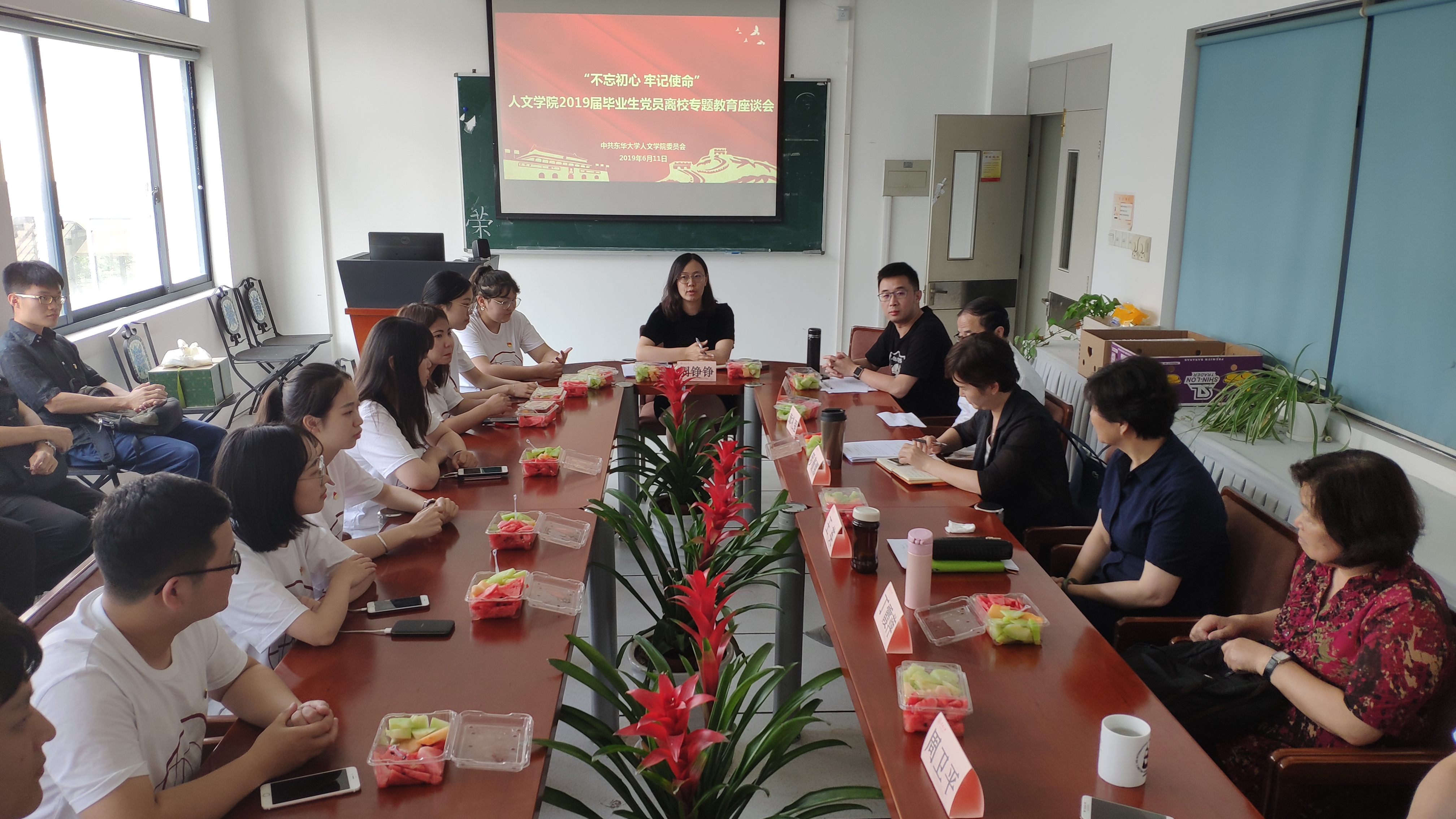 2019届毕业生离校再即,为确保毕业生安全、稳定、文明、愉快离校,有效推进平安校园、文明校园与和谐校园建设,切实做好毕业生党员离校前集中学习教育和组织关系转移管理等有关工作,pg娱乐电子游戏官网入口党委结合学院实际情况,于2019年6月11日,开展了以“不忘初心,牢记使命”为主题的毕业生党员离校专题教育座谈会。pg娱乐电子游戏官网入口党委书记王英、副书记罗薇娜,pg娱乐电子游戏官网入口关工委丁霞萍,pg娱乐电子游戏官网入口党委委员章礼强、叶长海、周卫平、周铮铮,以及毕业班辅导员、各学生党支部书记与pg娱乐电子游戏官网入口2019届毕业生党员出席本次活动。