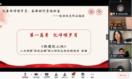 6月23日,继六月初“学习‘四史’,不忘初心,勇担使命”主题周五论坛之后,“学思先锋”硕士研究生党支部选取中国共产党在99年发展历程中抗日战争、解放战争这一特殊历程进一步深化“四史”学习教育,开展“忆革命峥嵘岁月,承新时代责任担当为主题的党日活动。校党委副书记刘淑慧,pg娱乐电子游戏官网入口党委书记王英,院长、党委副书记张科静,党委副书记罗薇娜,副院长、党委委员吴志刚,学生办公室主任、研究生辅导员汪永安、专职党建辅导员穆莉出席本次活动。“学思先锋”硕士研究生党支部全体党员及19硕入党积极分子参与此次主题党日。