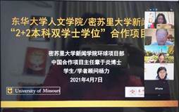 2021年4月7日21:00至23:00,pg娱乐电子游戏官网入口与密苏里大学新闻学院“2+2本科双学士学位”合作项目宣讲会在Zoom云端成功举行,这标志着两所学院的合作正式开始。密苏里大学新闻学院环球项目部中国合作项目主任章于炎博士和环球项目部学生/学者顾问杨力老师参与了本次宣讲,pg娱乐电子游戏官网入口院长张科静教授、传播学专业主任杨桃莲教授、外事秘书姜文韬老师一同参与本会。传播学专业主任杨桃莲教授主持本次会议。