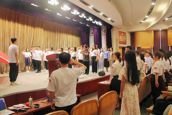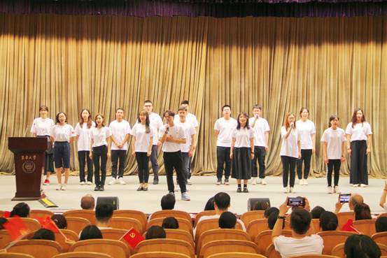 特邀党建组织员丁霞萍老师带领29位新党员在党旗下郑重宣誓,全体师生党员重温入党誓词,通过宣誓仪式,号召全体师生党员永葆政治本色、永葆革命和奋斗精神,在铮铮誓言之中,回想入党之初对党和人民的庄严承诺,牢记为人民服务的使命。