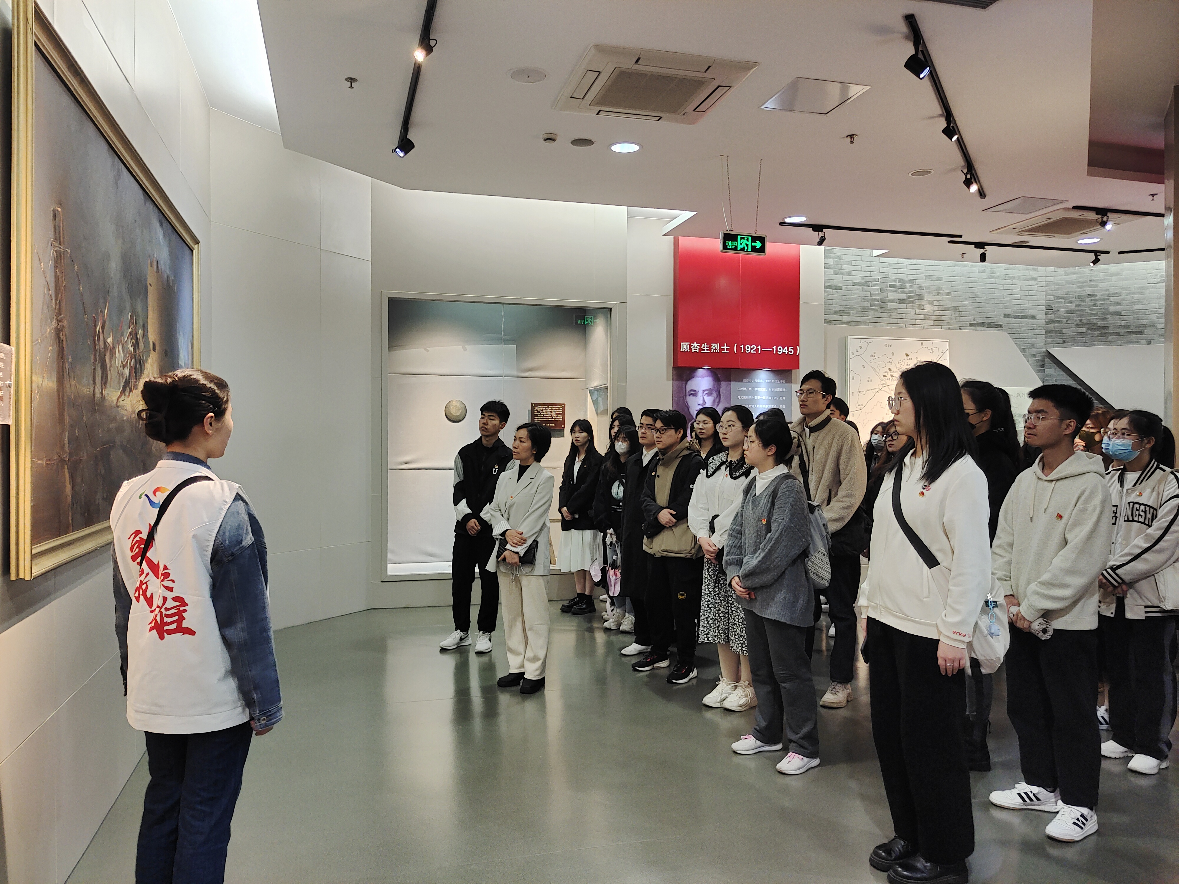 松江烈士陵园共有纪念馆、墓区、碑林区、纪念广场等几大功能区,旨在纪念在战争中牺牲的烈士、介绍各时期具有代表性的烈士事迹。祭扫仪式结束后,一行人前往烈士碑林区、墓区进行瞻仰。黑色的花岗岩镌刻着家书、诗文,高低错落,辉煌无声,流露着的是英雄们向死而生的英勇,傲然不屈的顽强。瞻仰结束后,全体成员前往松江英烈纪念馆,共同学习了22位烈士们抛洒热血、捍卫祖国山河的壮举。在场馆里,一行人驻足观看了松江英烈教育片《永不凋谢的芳华》,战士们在战火纷飞的岁月,无所畏惧,为了革命事业、社会主义事业,毅然赴死、虽死不悔。影片像一把打开记忆枷锁的钥匙,将尘封已久的往事慢慢揭开,故事里的每一位英雄,每一份英烈事迹都令人动容。