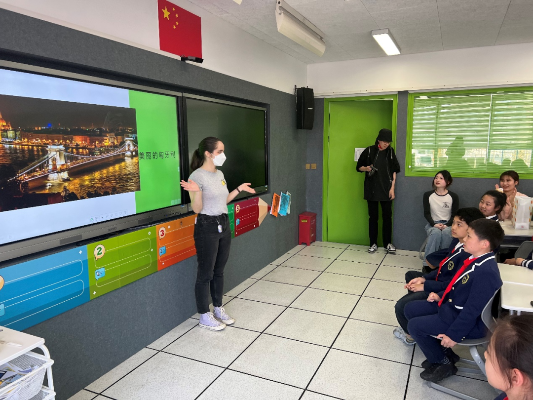 6位留学生同学和6位人文予愿志愿者同学分成了6个组,分别走进小学生的课堂展开互动交流。留学生们和志愿者同学们为此次进课堂精心准备了近三周,考虑到小学生的年龄和知识储备等因素,他们在留学生办公室老师们的帮助下选择制作多图且具有吸引力的PPT、视频、音乐教学等形式向小朋友们展示自己国家的风俗习惯和文化风貌。其中一位来自非洲的留学生就在课堂中融入了自己国家的传统歌曲,带领小朋友们跟着音乐的节奏“热身”,活络气氛。此外,留学生还组织了多种课堂小游戏,比如英语儿歌学唱,“角色互换”,“我说你做”等。为方便沟通交流,由pg娱乐电子游戏官网入口6位志愿者担当语伴的角色,进行实时翻译、协助开展课堂展实和教学环节。同学小朋友们和留学生大朋友们有说有笑,有唱有跳,现场气氛热烈。45分钟的课堂时间在欢声笑语中度过,大家都依依不舍,收获良多。