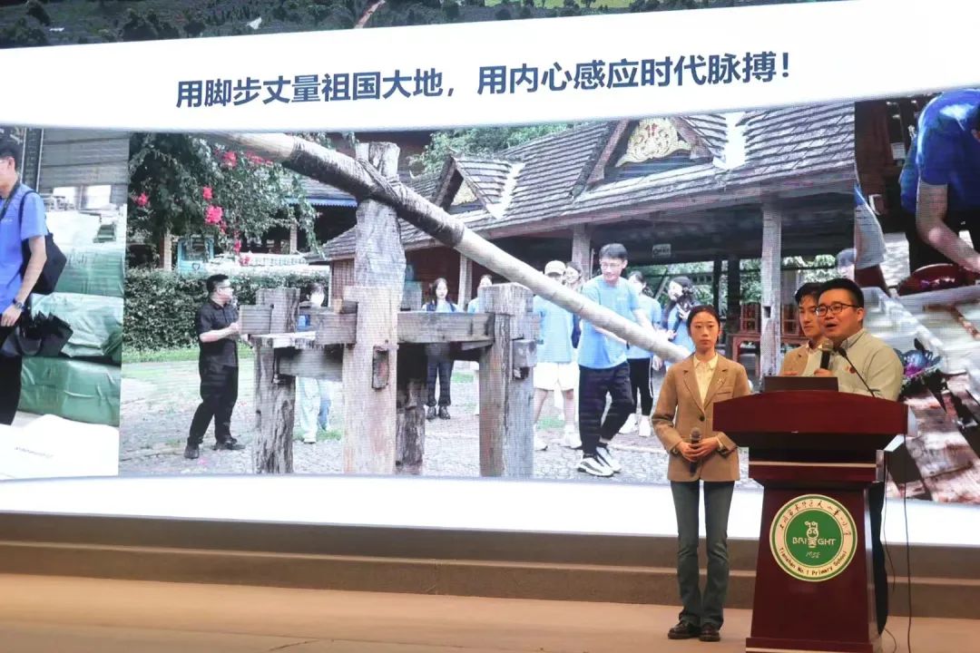 宣讲团成员讲述了《罗小黑战记》、《大鱼海棠》等国漫背后的创作故事,生动地诠释了党的二十大报告提出的“讲好中国故事,传播好中国声音,展示可信、可爱、可亲的中国形象。”接着,宣讲团成员展示了在西双版纳实践期间设计的“二十四节气”茶叶包、傣锦纹样雨伞、热带水果包装等非遗文创IP产品,把乡村振兴的战略融入一个个生动的实践故事,带同学们走进了“用脚步丈量大地,用内心感应时代脉搏 ”的火热实践。最后,宣讲团从古今丝绸之路的变迁发展,将中国对世界文明的贡献娓娓道来,号召同学们弘扬优秀传统文化,坚定文化自信。