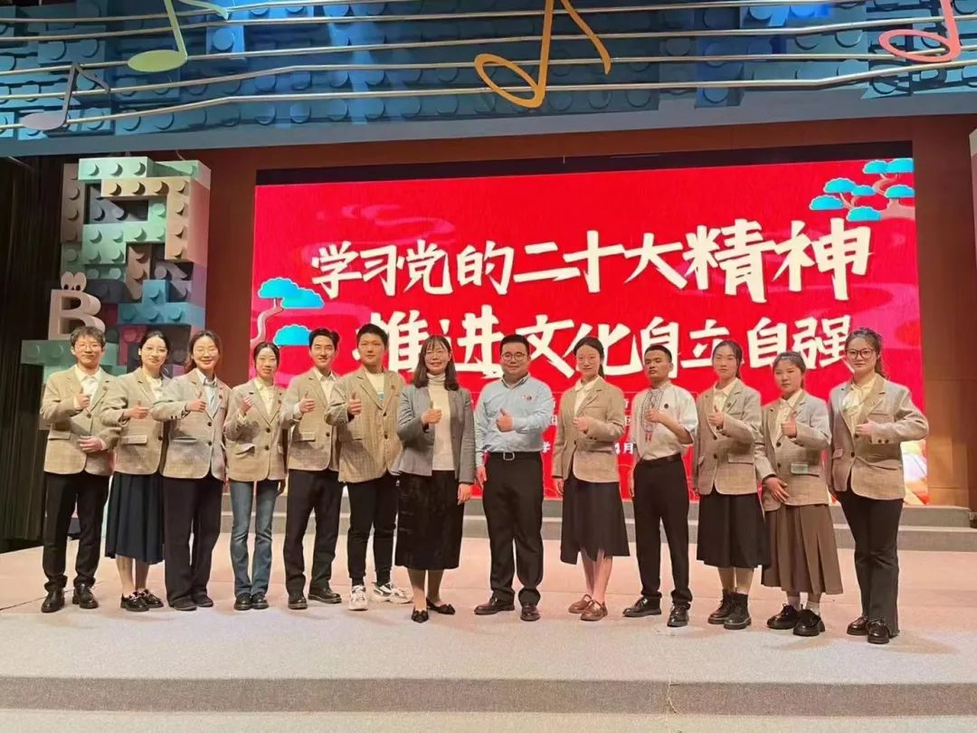 在全国各地掀起学习宣传贯彻党的二十大精神热潮之际,4月14日,pg娱乐电子游戏官网入口“薪火长宁”二十大精神红色宣讲团走进上海市长宁区天山第一小学,发挥学科优势,以推进文化自信自强为主题,从国漫崛起凸显的文化自信自强讲起,再到00后开展的文化传承社会实践,再讲到优秀传统文化对外传播,将党的二十大精神与思政启蒙相结合,以小学生们喜闻乐见的方式开展主题宣讲。