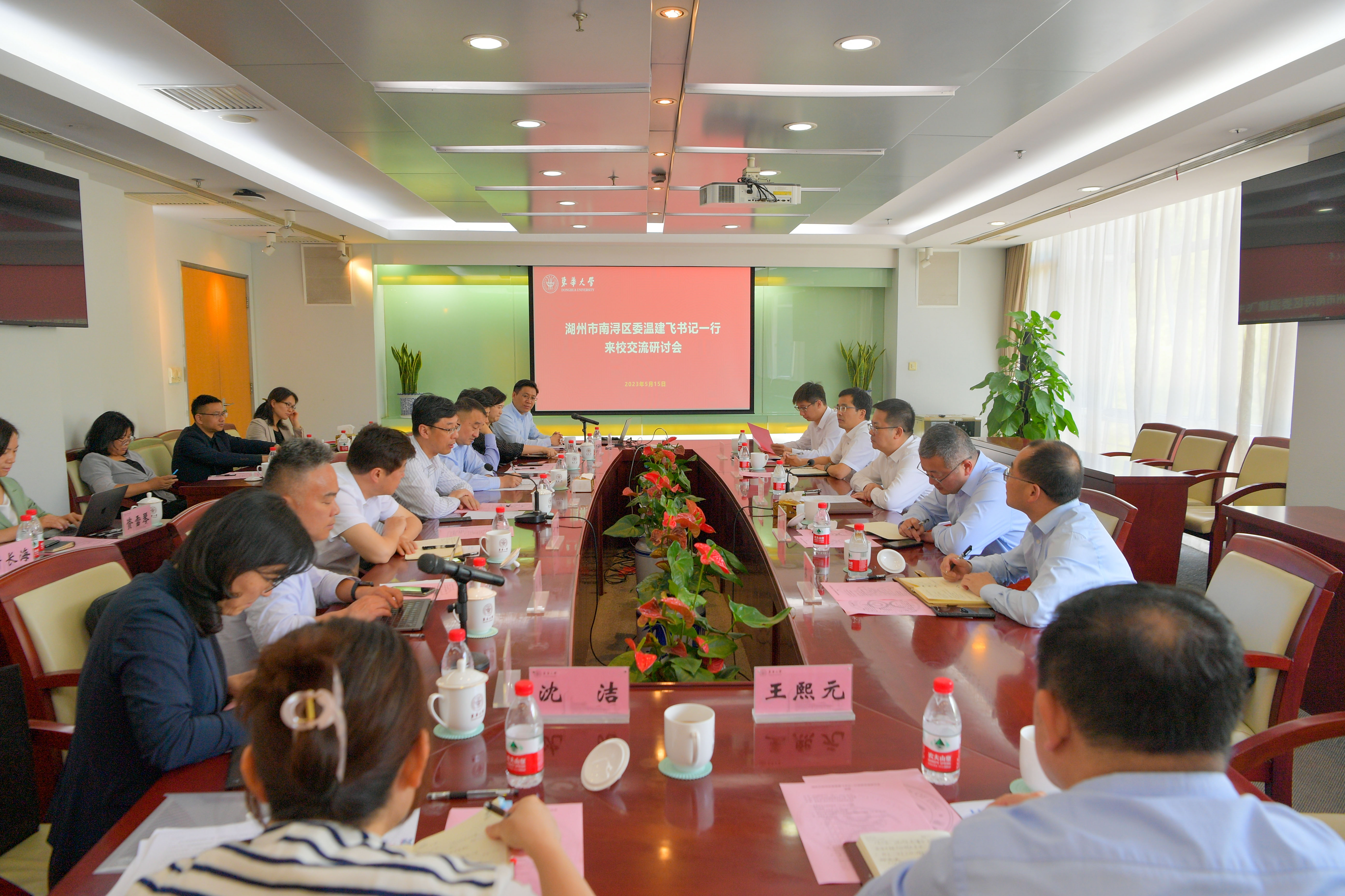 近日,湖州市南浔区委书记温建飞一行来校考察交流。党委书记刘承功,党委副书记、纪委书记王云骏出席交流座谈会,南浔区及pg娱乐电子官网相关单位负责人与会。pg娱乐电子游戏官网入口党委书记韩哲宇主持会议。