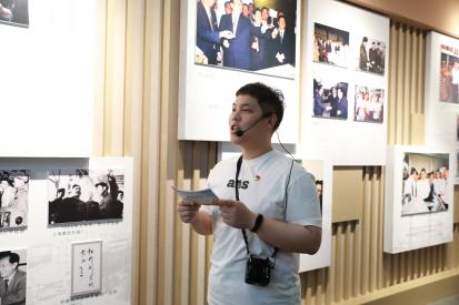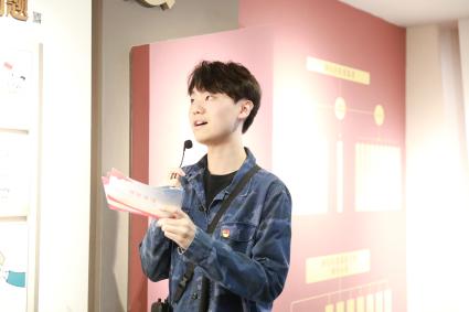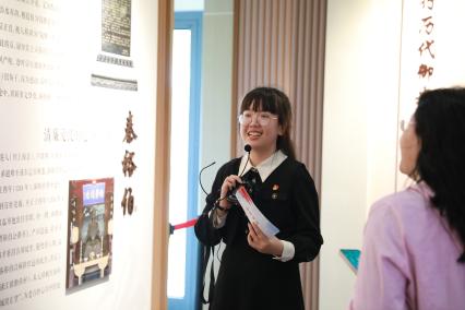 薪火宣讲团成员——学思先锋第二党支部党员杨瑞杭、李怡燃,新闻传播学师生联合党支部党员张诚语为党员们详细介绍了正气馆和学习馆中的廉政文化与党纪知识。正气馆内,通过薪火宣讲团对廉政名士、匾额和碑刻,以及名人家风故事等内容的讲解,党员同志们了解到闵行历史名流和优秀共产党员的廉政事迹;移步学习馆,聚焦新修订的《中国共产党纪律处分条例》,薪火宣讲团通过对增写和修改内容的细致解读,让师生党员对党纪党规有了更深刻的理解和认识。