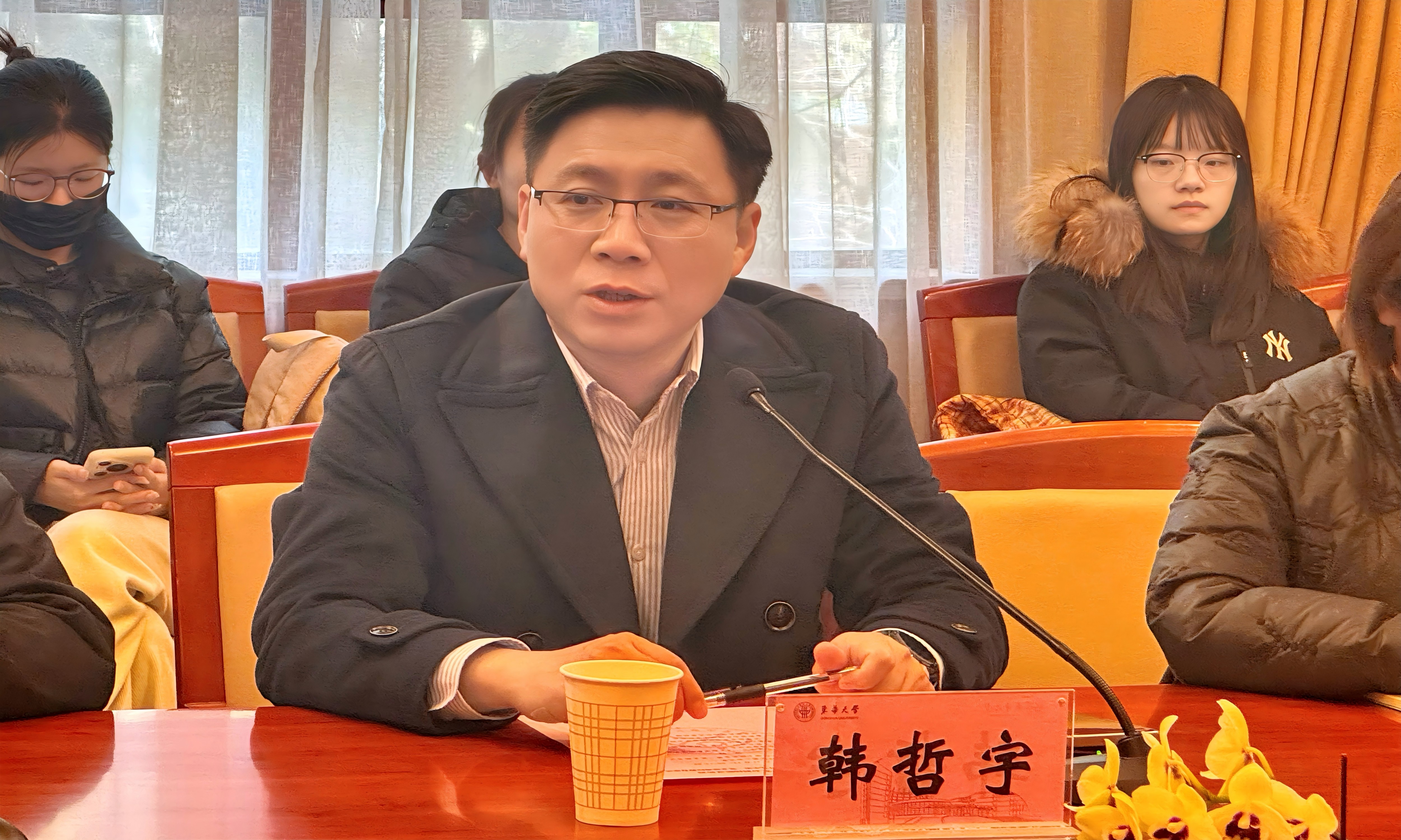 师者谆谆寄语,青年扬帆起航。宣誓完毕,学院老师们为毕业生送上殷切嘱托。韩哲宇提出三点期望:“一要不做‘抱怨者’,永葆干事创业的主动性;二要善用AI但不过度依赖人工智能工具,培养独立思考能力;三要警惕碎片化学习,构建系统知识体系。”他特别强调,面对世界百年未有之大变局,青年党员更要始终保持共产党人的初心,全心全意为人民服务,创造我们力所能及的一切。与会老师们寄语毕业生党员要“以专业能力服务社会,以党员标准丈量人生”,将个人成长融入国家发展大局。“在认清生活真相后依然热爱生活”,以罗曼·罗兰笔下的英雄主义直面挑战。扛起党员责任、担起党员义务,在新时代书写奋斗篇章。