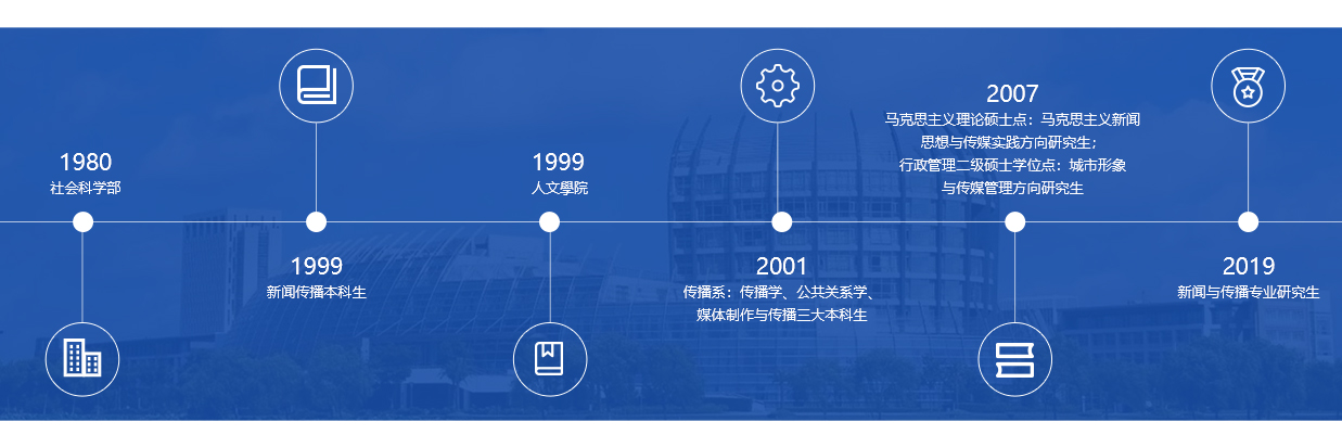 pg娱乐电子游戏官网入口新闻传播专业创建于1999年,2001年成立传播系,建有三个本科专业:传播学、公共关系学、媒体制作与传播,三大专业构成新闻大类人才培养,每年招生本科生150人左右。2007年,分别在马克思主义理论硕士点开设马克思主义新闻思想与传媒实践研究方向,在行政管理二级硕士学位点中开设城市形象与传媒管理研究方向。2018年申报获批新闻与传播专业硕士点,2019年开始招生。